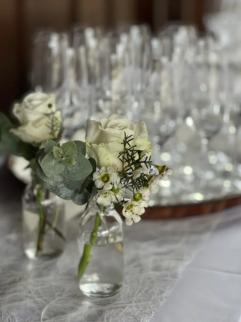 Ihr bringt die Ideen – wir setzen sie um: von der Serviette bis zur kompletten Dekoration. Menükarten (A5), weiße Tischdecken & Serviettenservice, florale Tischdeko, Traubögen, Vasen, Kerzenständer, Eindecken eurer eigenen Deko – alles aus einer Hand.